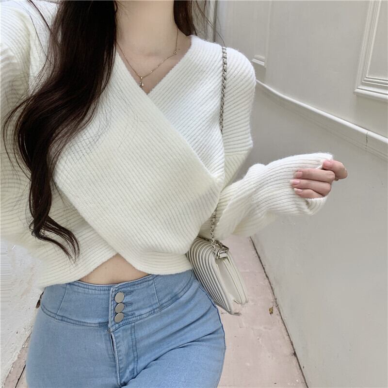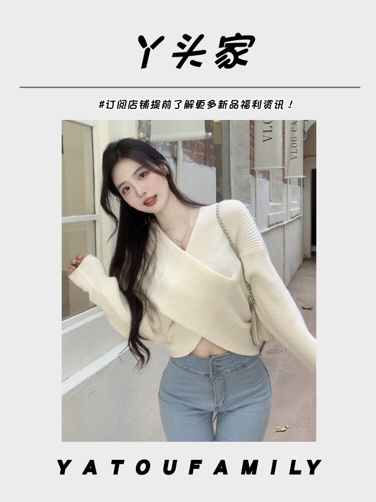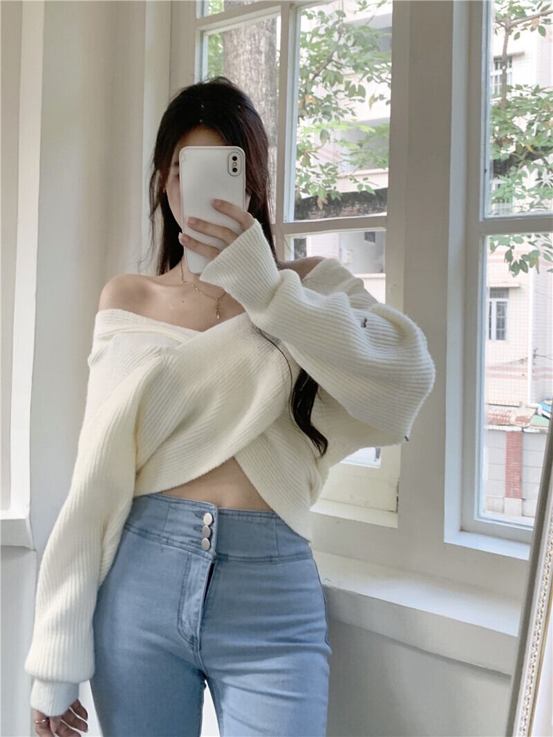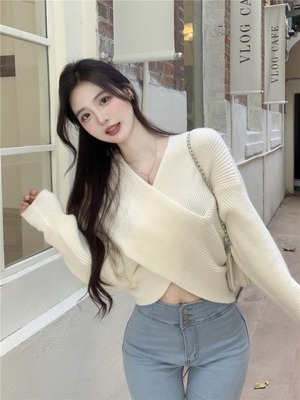 セーター クロスVネックホワイトシャツ オータム ロング 秋物 ガールズファッション52003007031