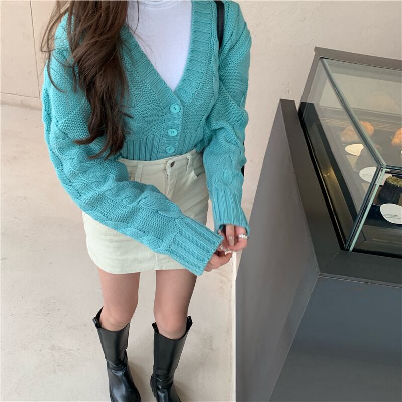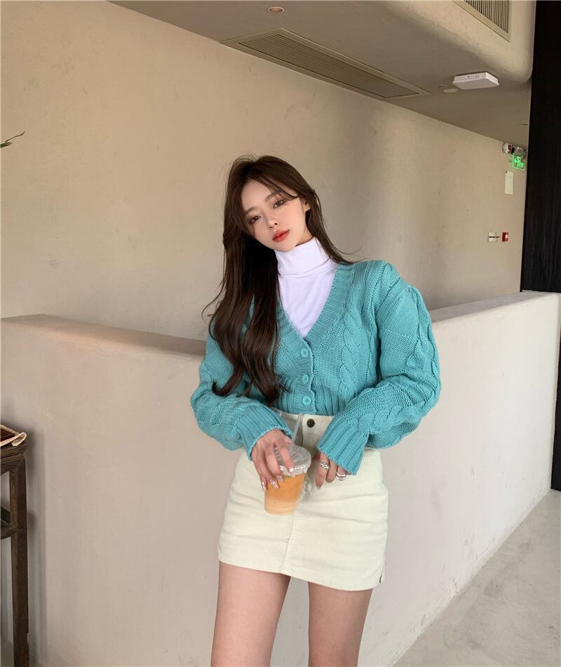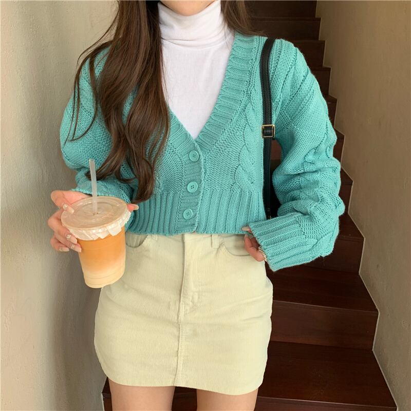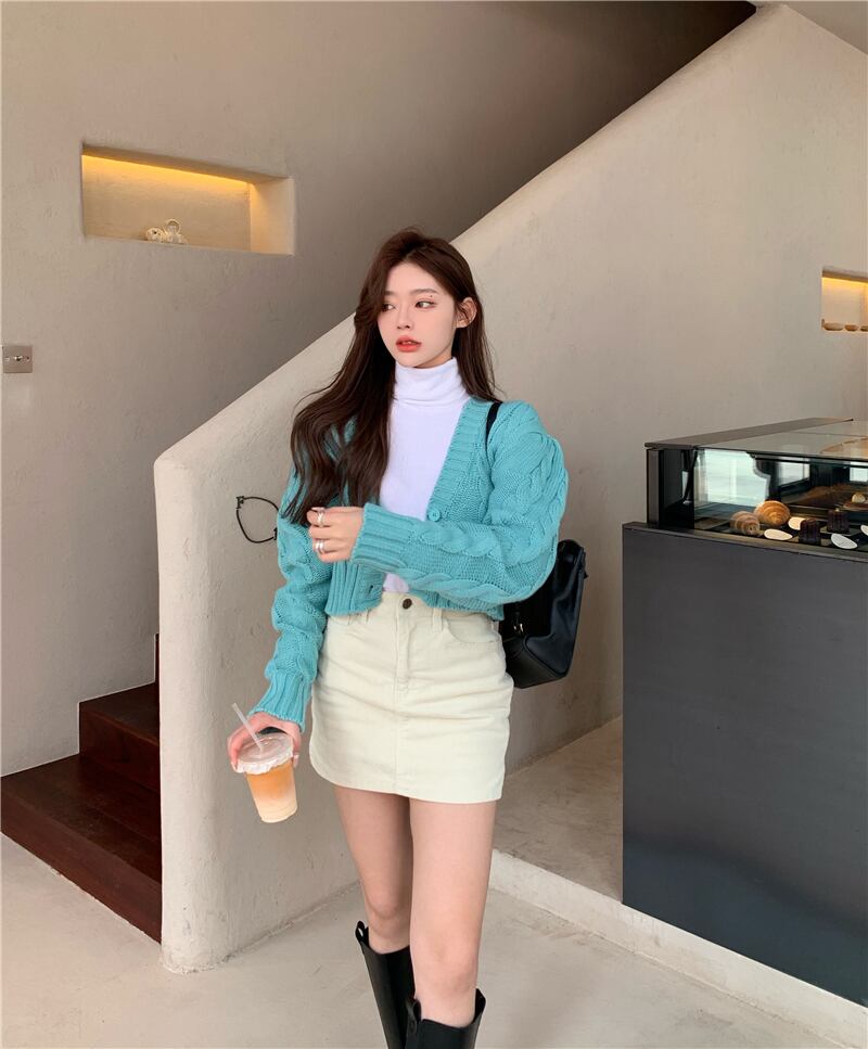 Vネックショートセーター カーディガンジャケット スタイルハイウェストウェストスカート パンツ ストリート オータム 秋物 ウィンター 冬物 ガールズファッション63029008761
