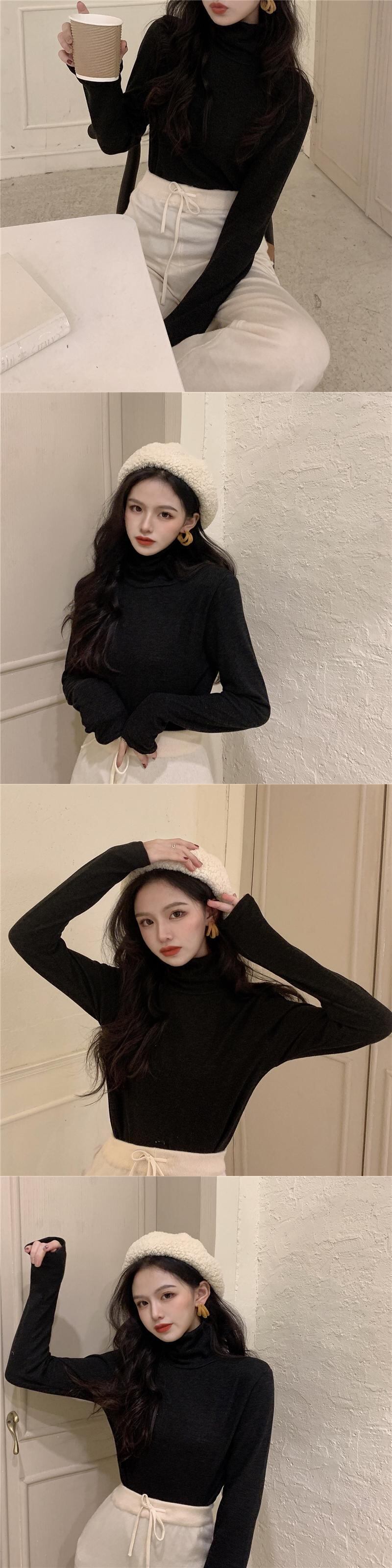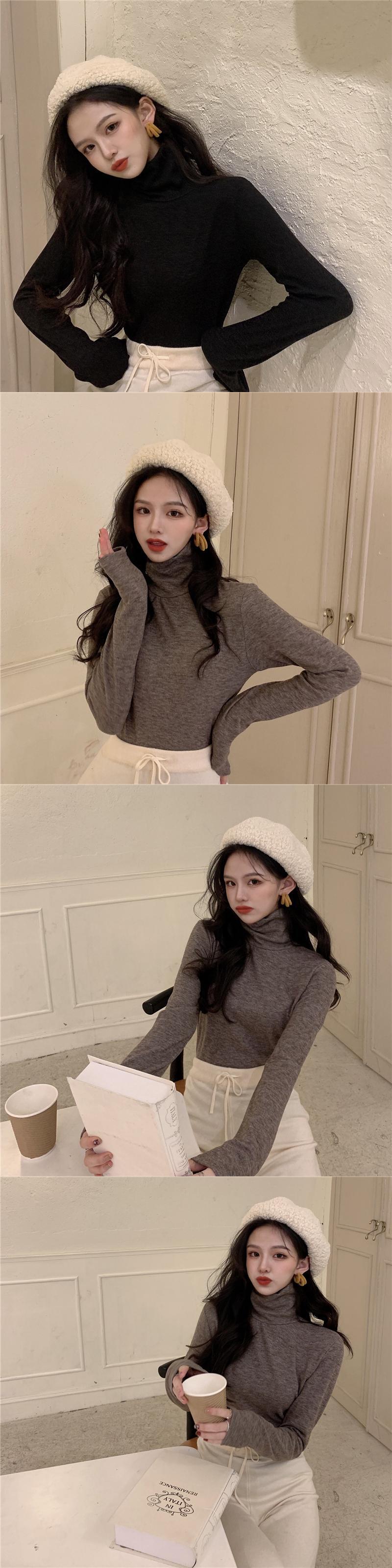 オータムウィンターソリッド カラースリムTシャツ トップス ロング 秋物 冬物 ソリッドカラー ガールズファッション59101007060
