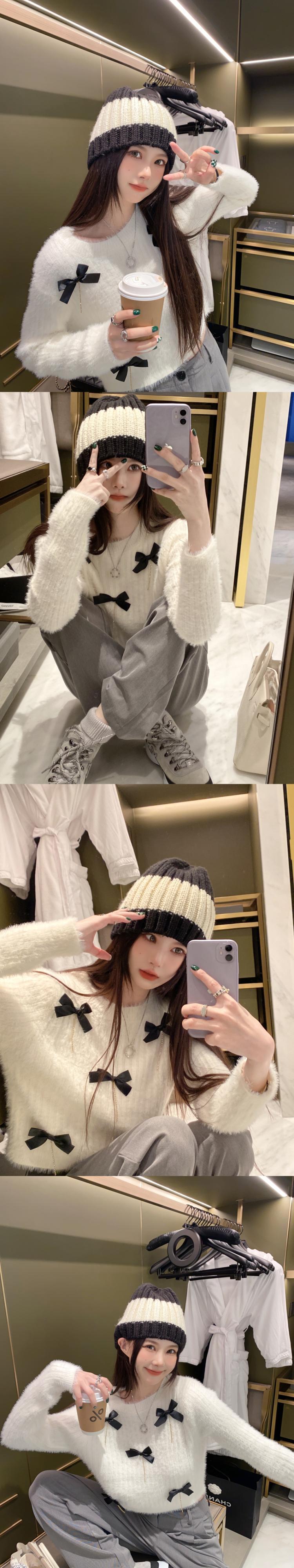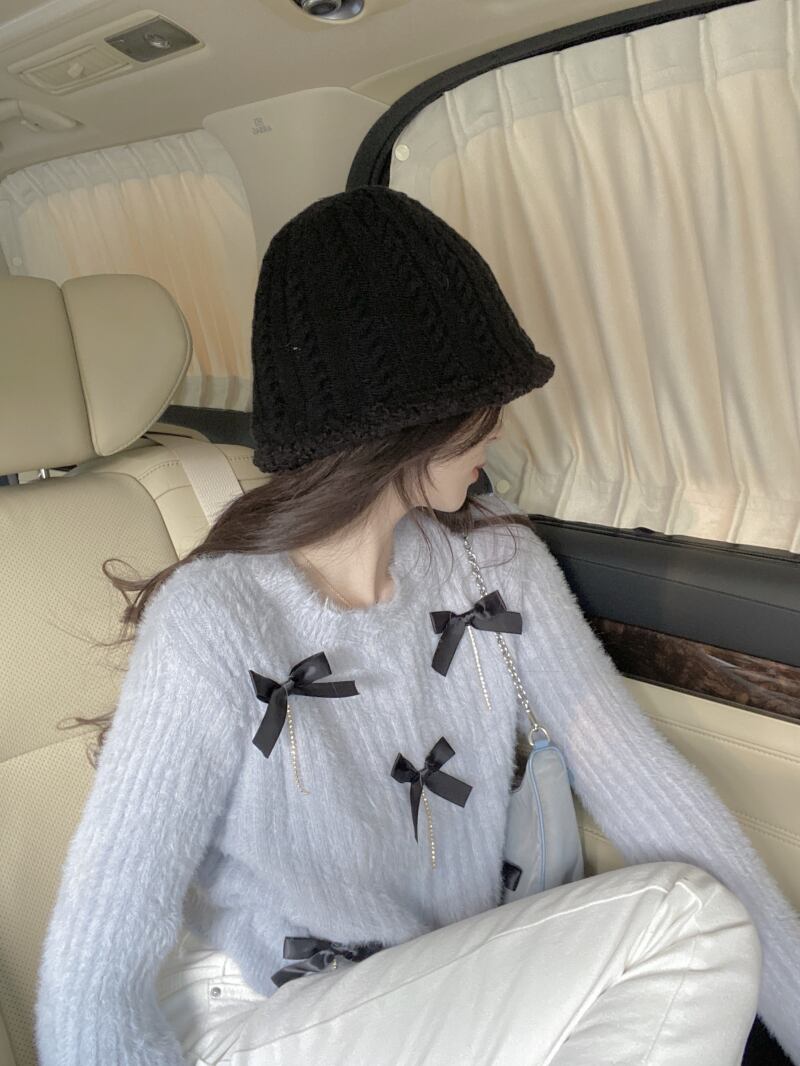 セーター リボンショートラウンドネックプルオーバー オータムウィンターカジュアルトップス ロング 秋物 冬物 Oネック ピュア ガールズファッション61078258130