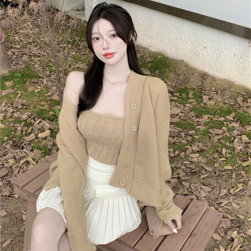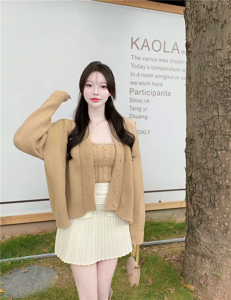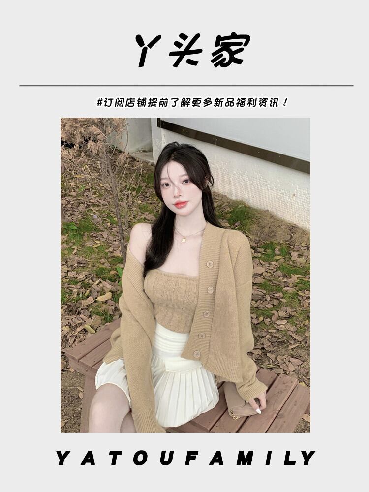 オータムウィンターショートトップス ニットカーディガン ストリート 秋物 冬物 ガールズファッション64924092578