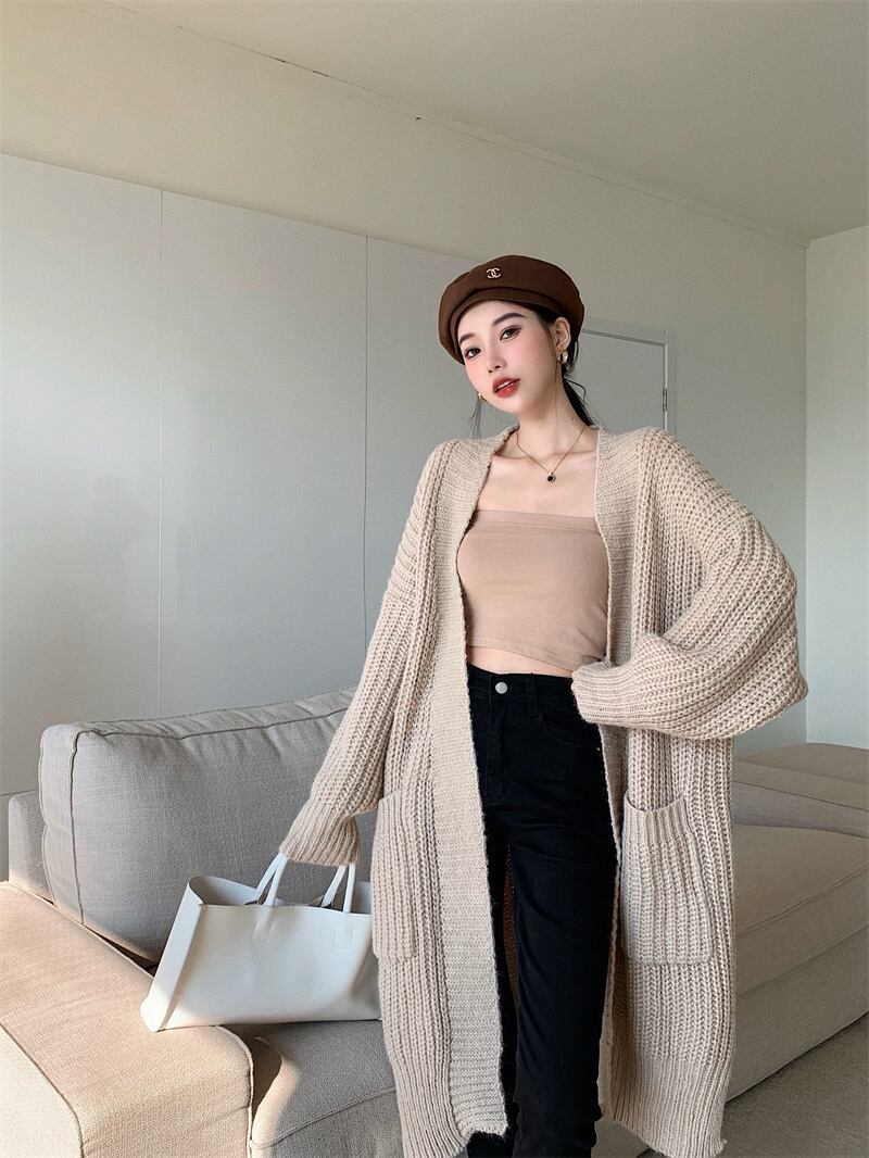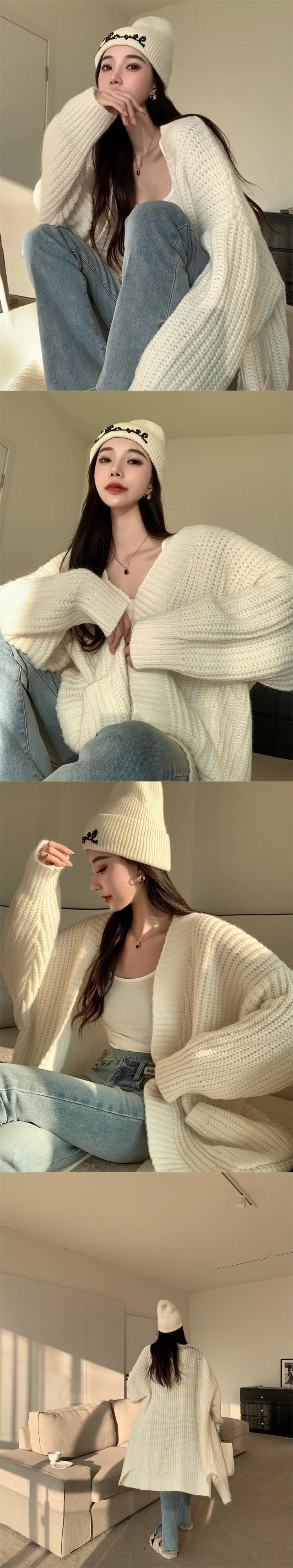 オータムウィンタールーズVネックセーター コート ソリッド カラーニットカーディガン ロング エレガント 秋物 冬物 ソリッドカラー ガールズファッション80962184235
