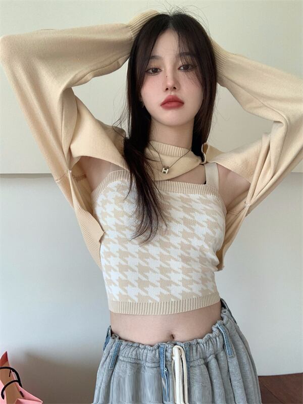 ニットブラウス ジャケット オータムショートセーター ロング 秋物 ガールズファッション75768245023
