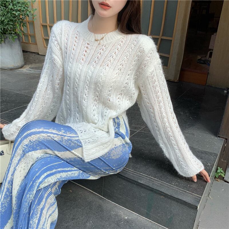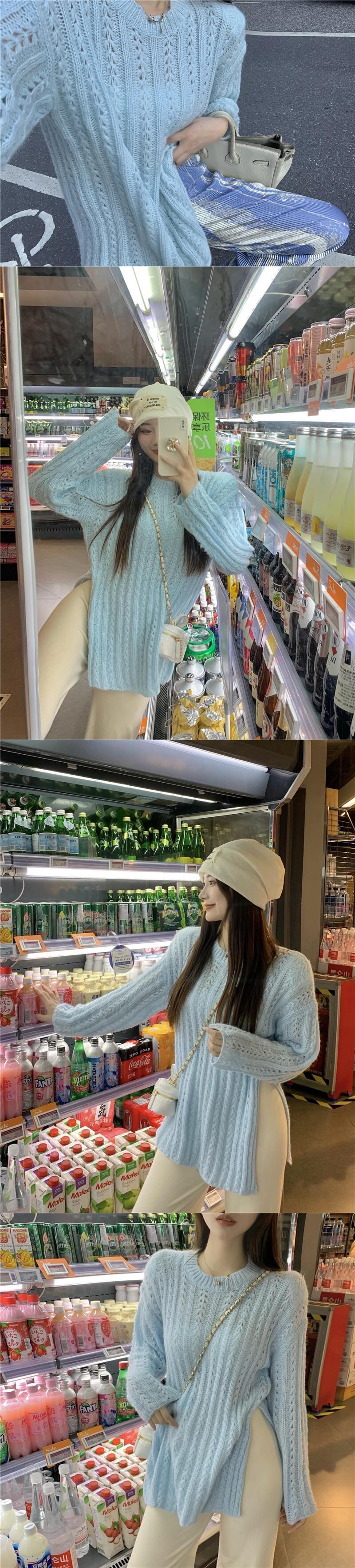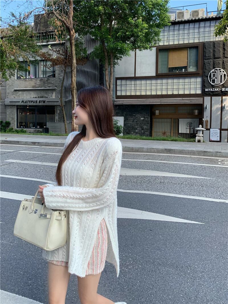 ラウンドネックセーター レディースオータムウィンタールーズプルオーバー ソリッド カラートップス ロング 大人ガーリー スウィート キュート カジュアル 秋物 冬物 Oネック ソリッドカラー ガールズファッション65419715163