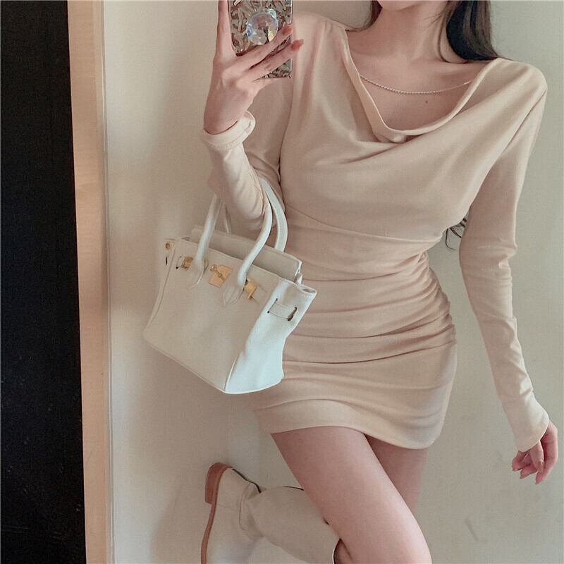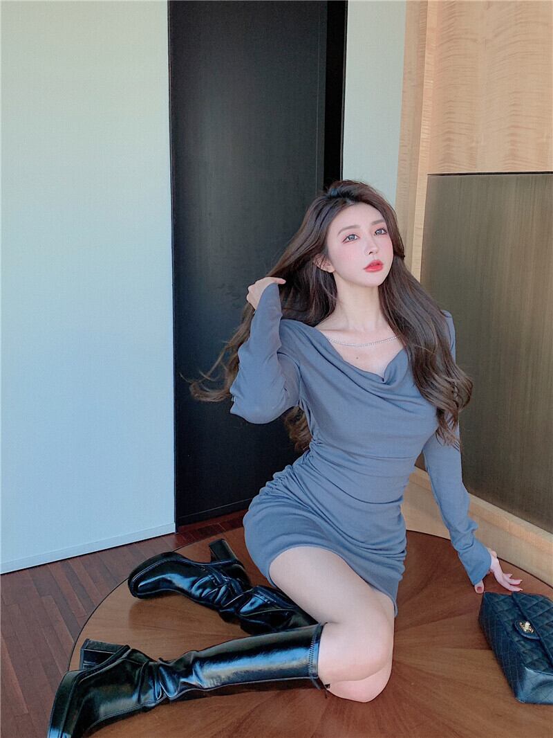 Vネックチェーン ドレス オータムウィンターウェスト薄手スカート ロング 秋物 冬物 ガールズファッション30483063906