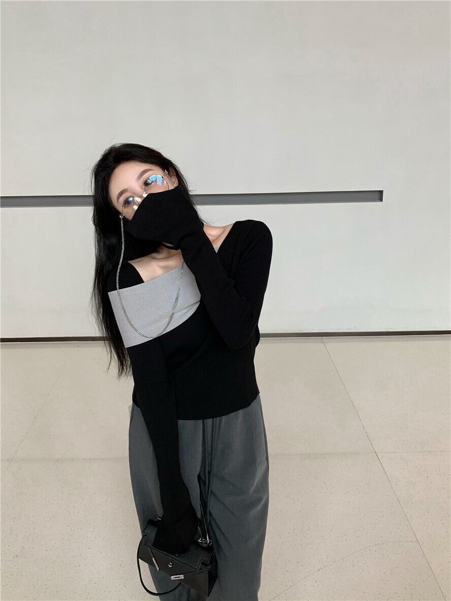 Tシャツ シャツ オータムショートカラートップス ロング 秋物 ガールズファッション58955627804