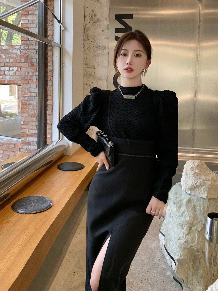 色:ブラックトップ,コーヒートップ,ブラックサスペンダースカート,コーヒーカラーサスペンダースカート