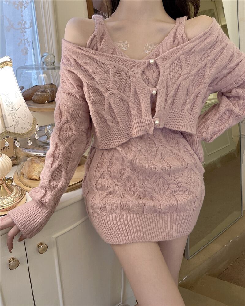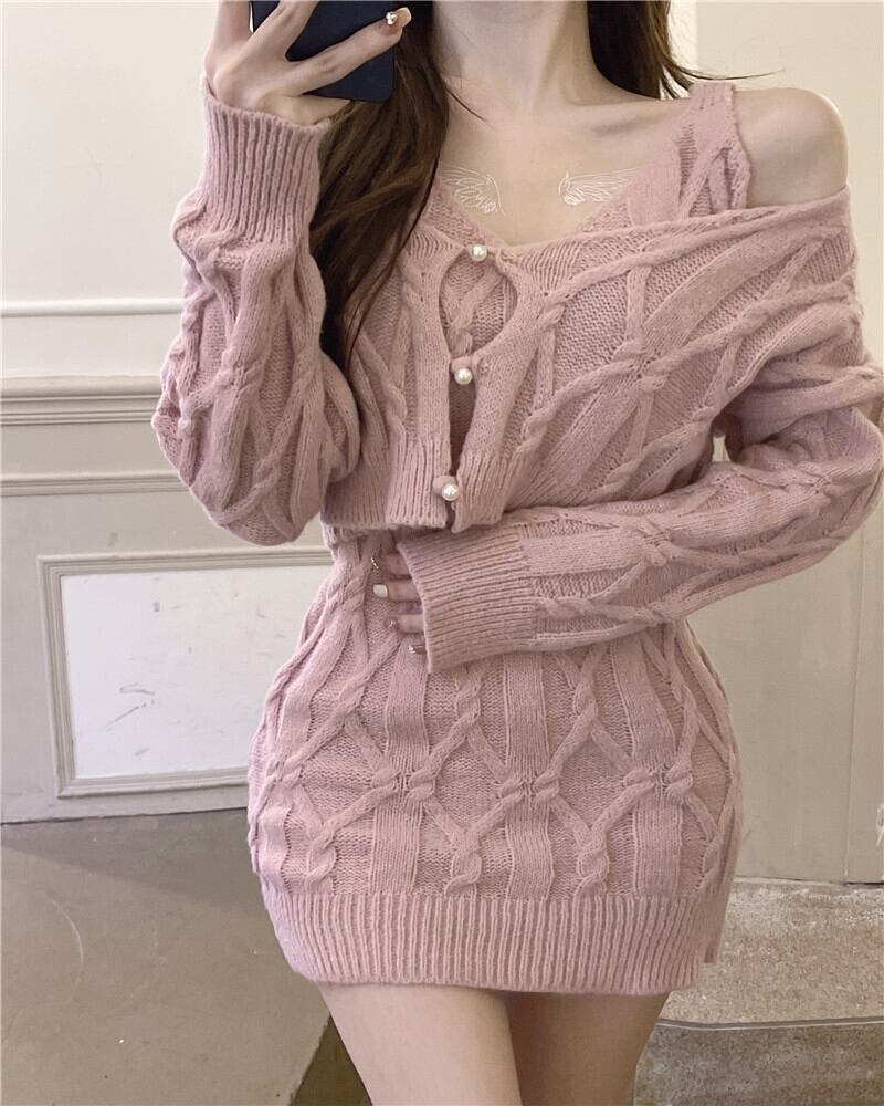 Vネックウェストドレス オータムウィンタースタイルルーズセーター カーディガン ロング 秋物 冬物 ガールズファッション27958658548