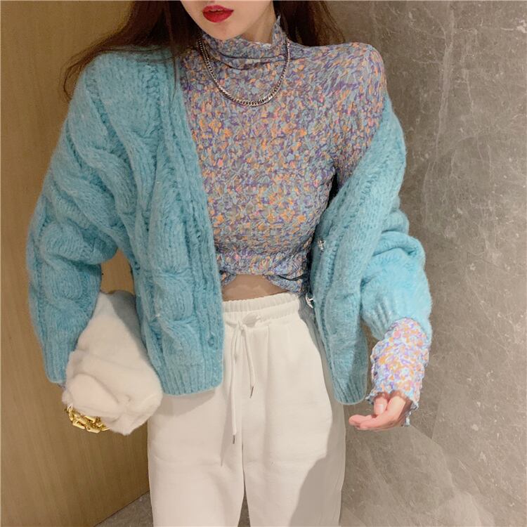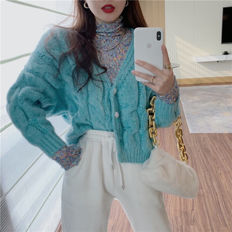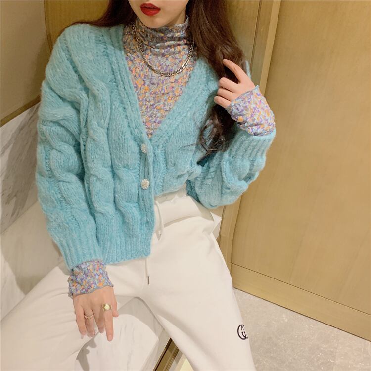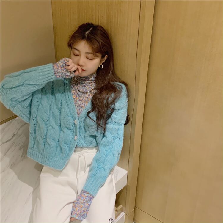 スタンダードルーズVネックセーター ジャケット オータムウィンタースタイルフローラルレースシャツ レトロ 秋物 冬物 花柄 ガールズファッション15561122656