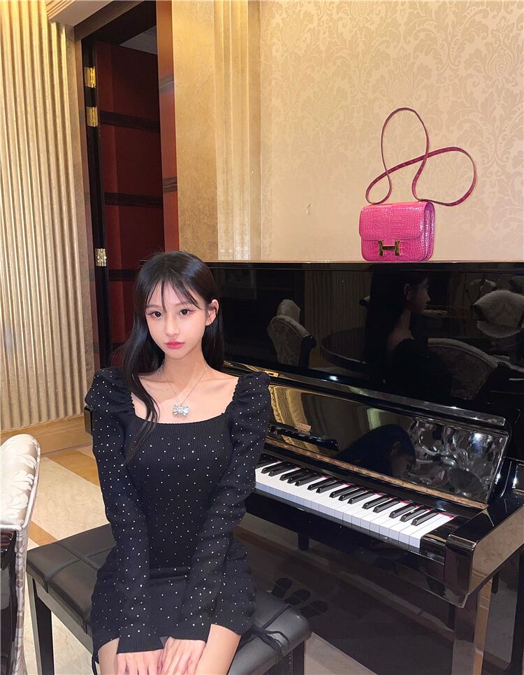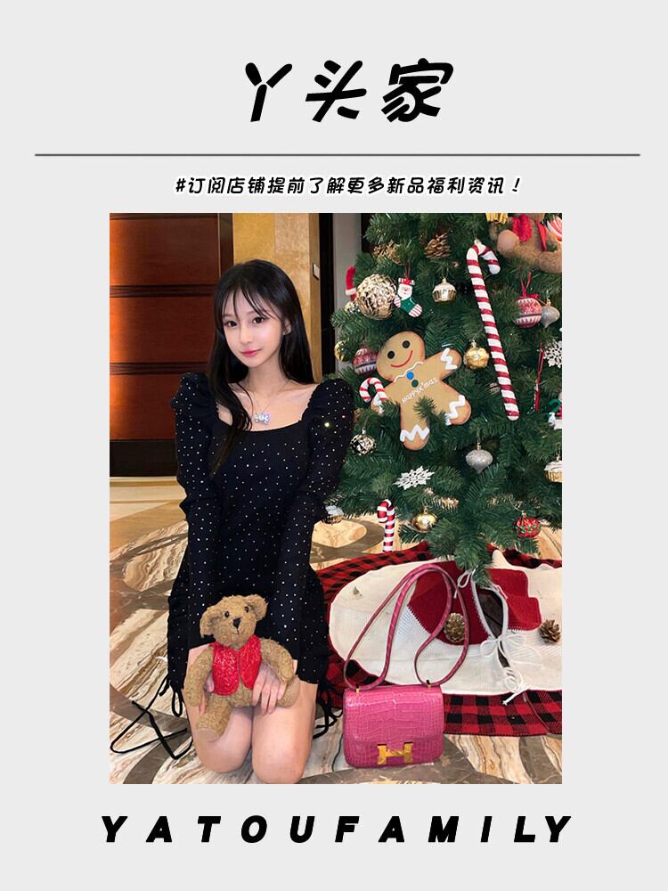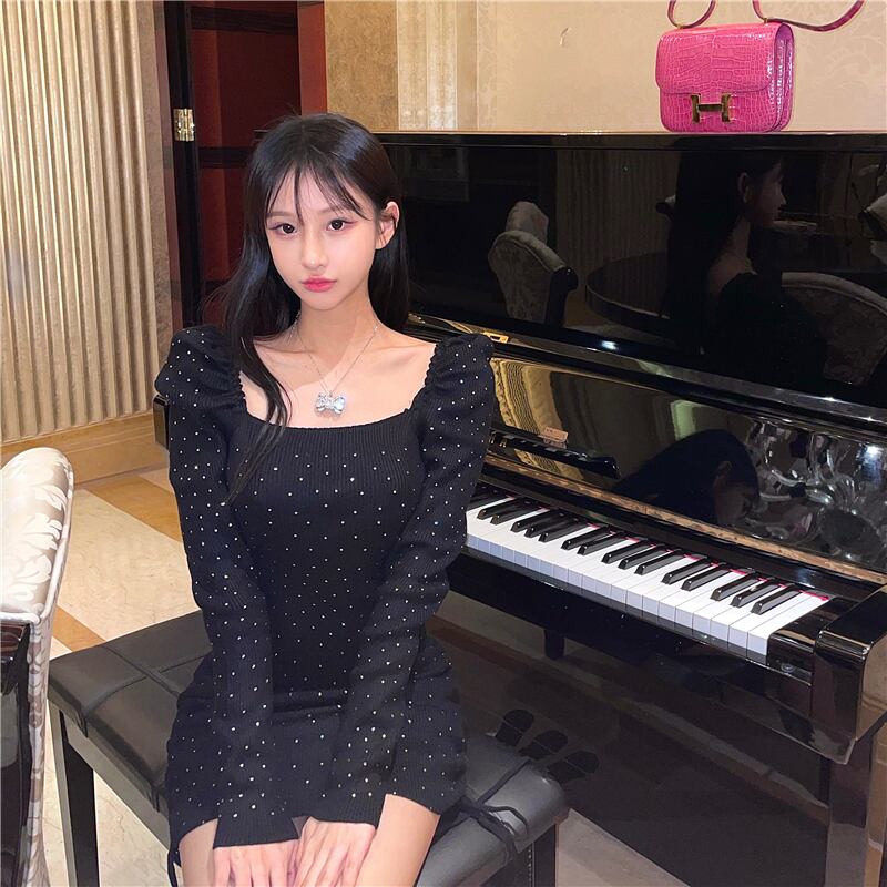 スリーブドレス オータムウィンターギャザースカート 大人ガーリー スウィート キュート カジュアル 秋物 冬物 スクウェア ガールズファッション83690819636