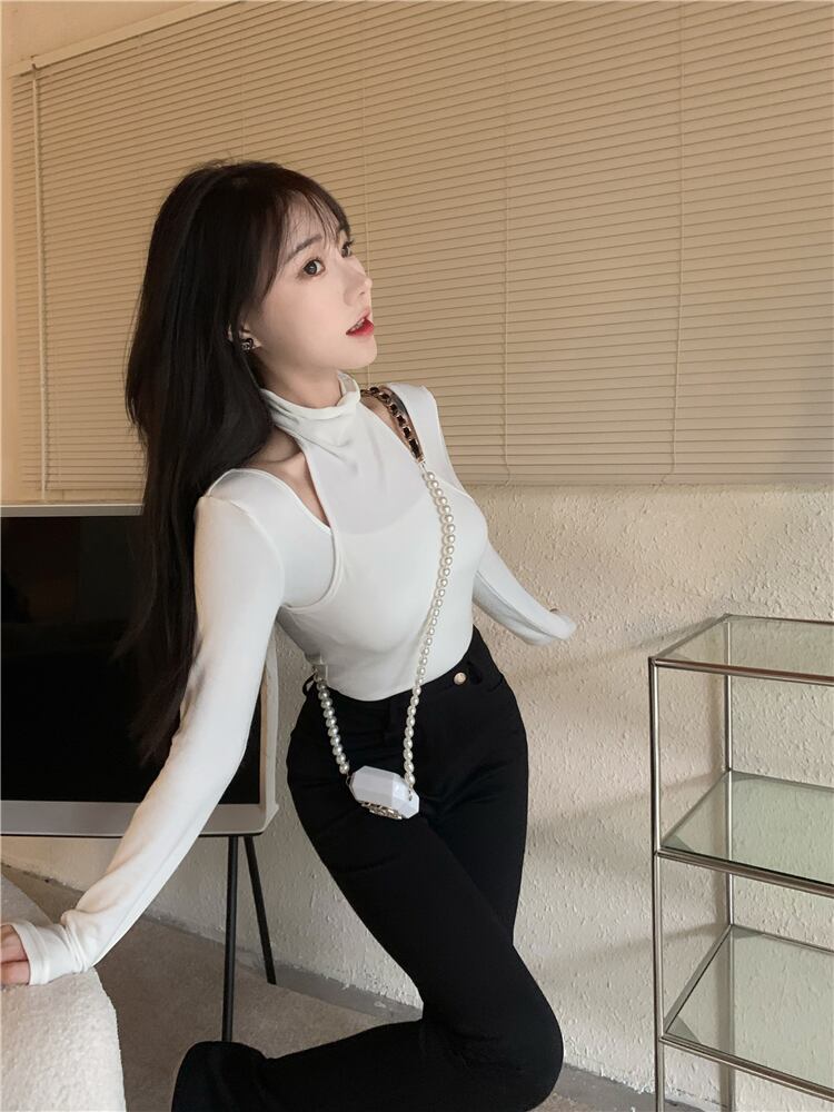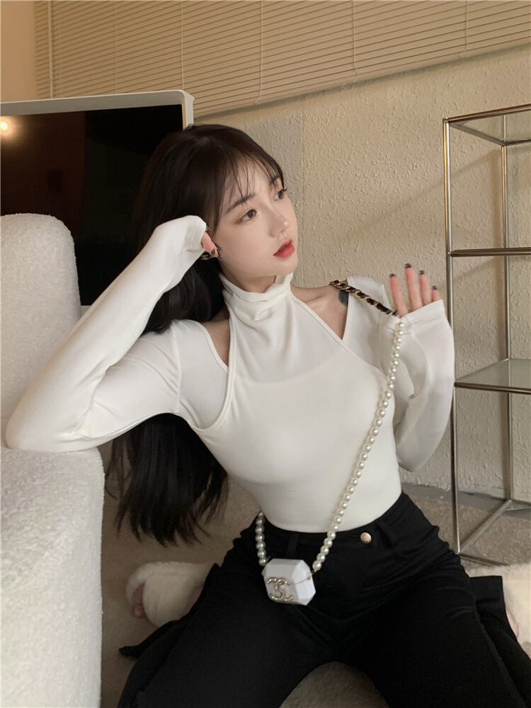 Tシャツ シャツ オータムウィンタースタイルスリムトップス ロング 秋物 冬物 オフショルダー ガールズファッション99292450151