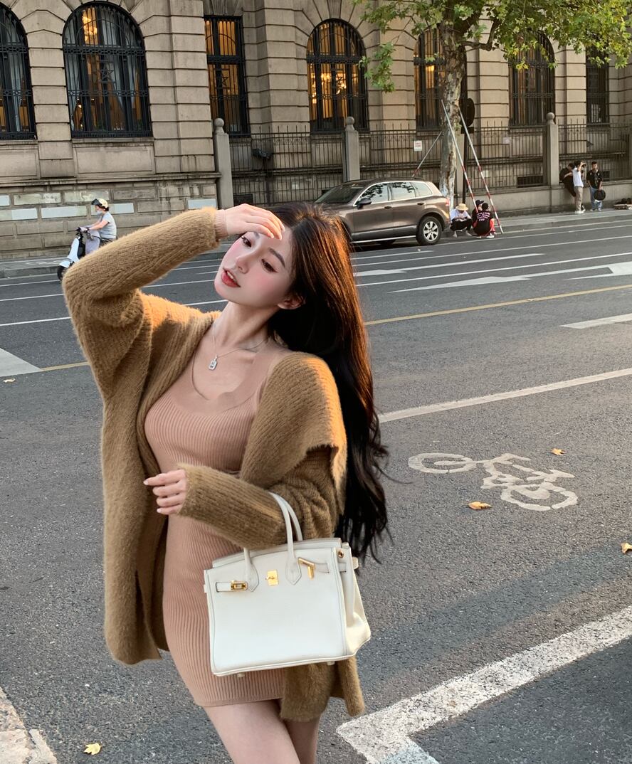 色:白いドレス,コーヒー色のドレス,白いコート,コーヒージャケット