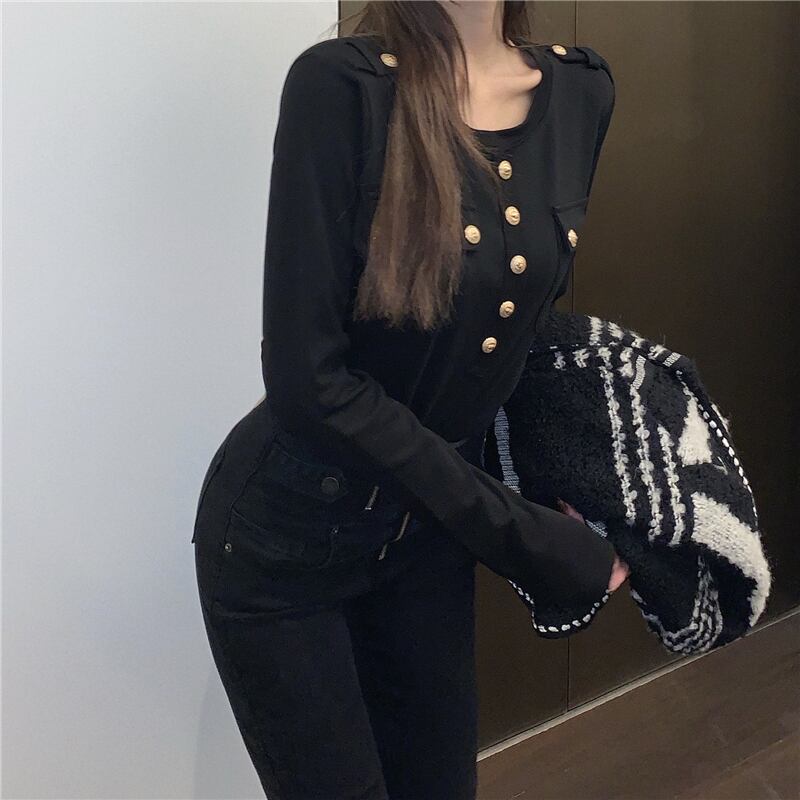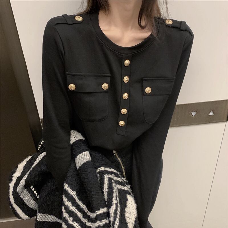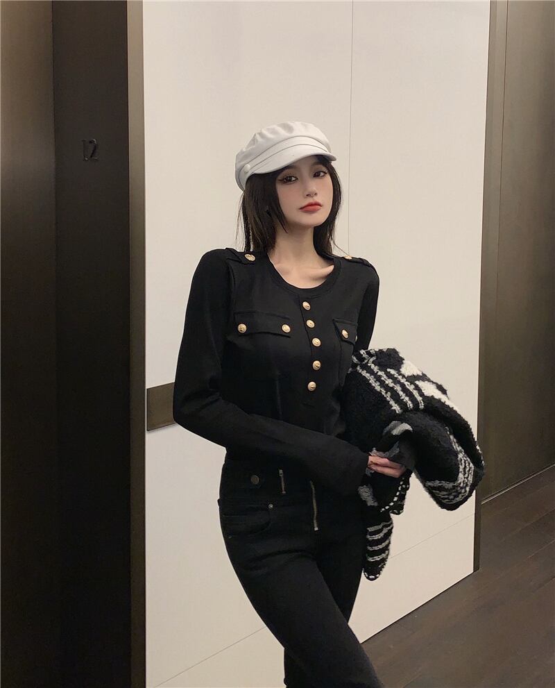スタイルラウンドネックTシャツ シャツ オータムウィンタースリムブラック ロング 大人ガーリー スウィート キュート カジュアル 秋物 冬物 Oネック ガールズファッション32892939668