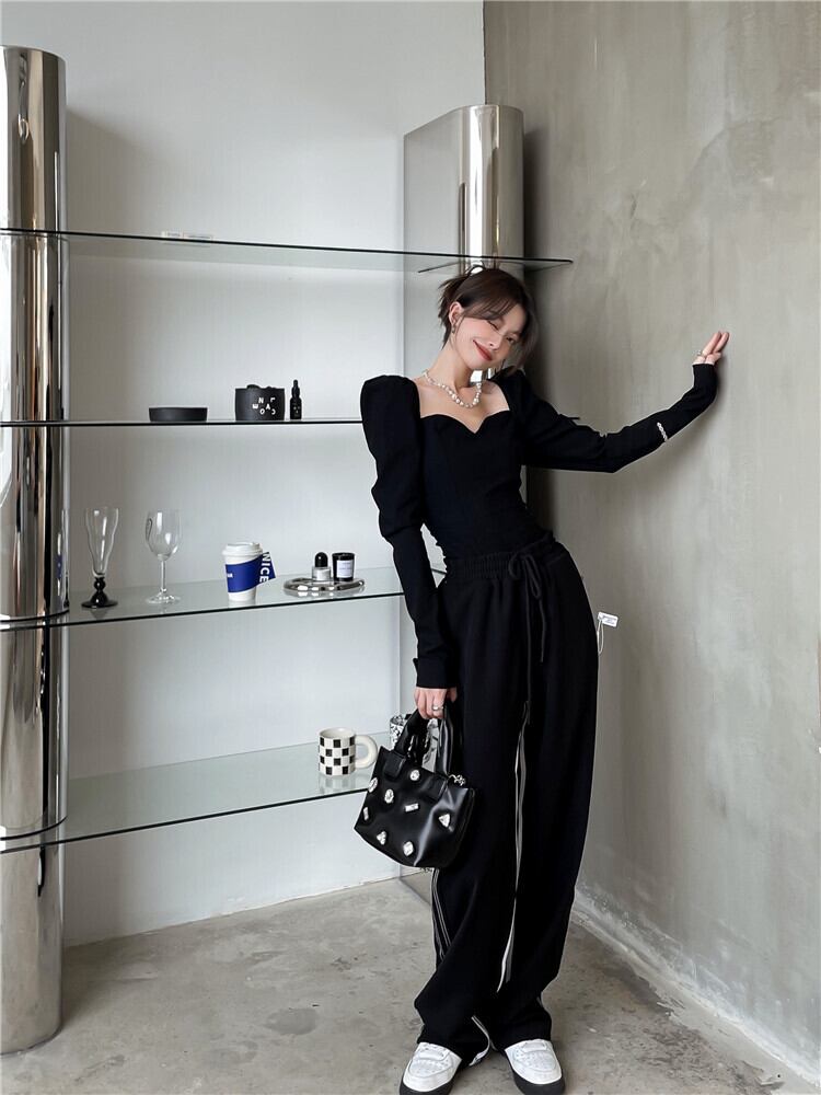 スタンダードスリーブTシャツ オータムウェスト薄手ショートトップス レトロ 秋物 スクウェア ガールズファッション89864466677
