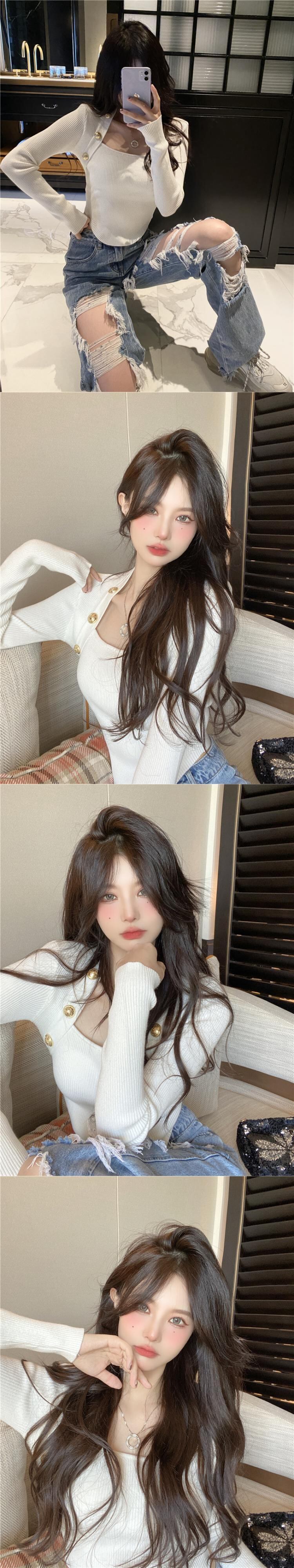 Tシャツ シャツ オータムウィンタースリムスタイルニットセーター ロング 秋物 冬物 スクウェア ガールズファッション4161831922