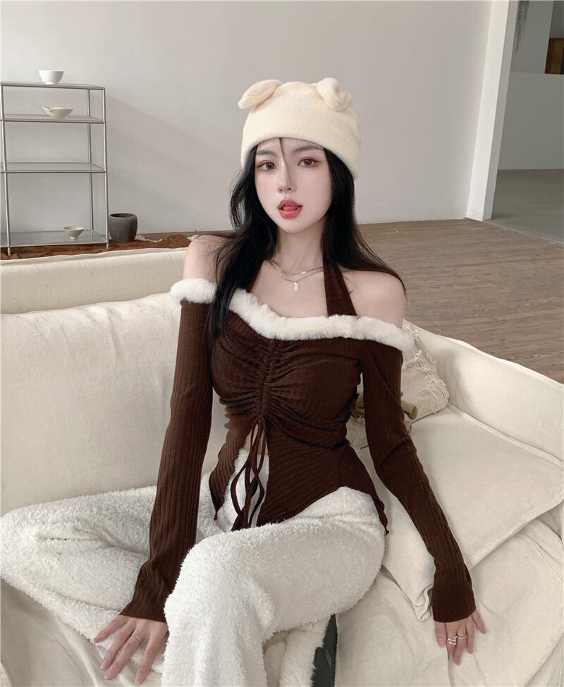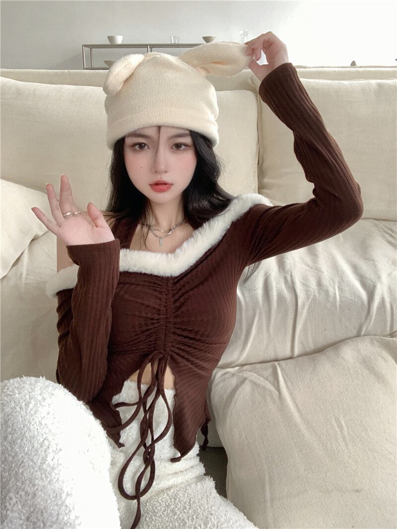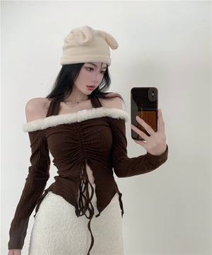 ニットシャツ オータムウィンターギャザートップス ロング 秋物 冬物 ガールズファッション41180579637