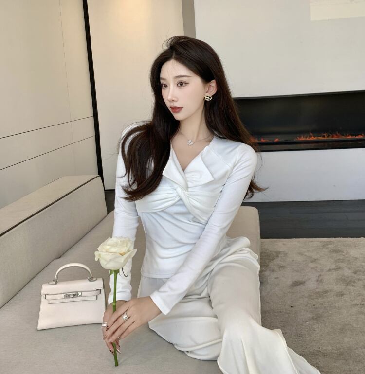 Tシャツ シャツ オータムウィンターVネックスリムトップス ロング 秋物 冬物 ガールズファッション36261349971