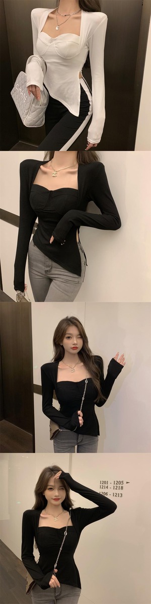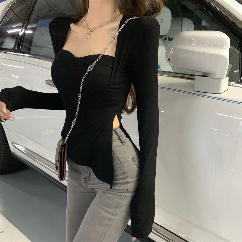 Tシャツ シャツ オータムカラーショートトップス ロング 秋物 スクウェア ガールズファッション14129481798