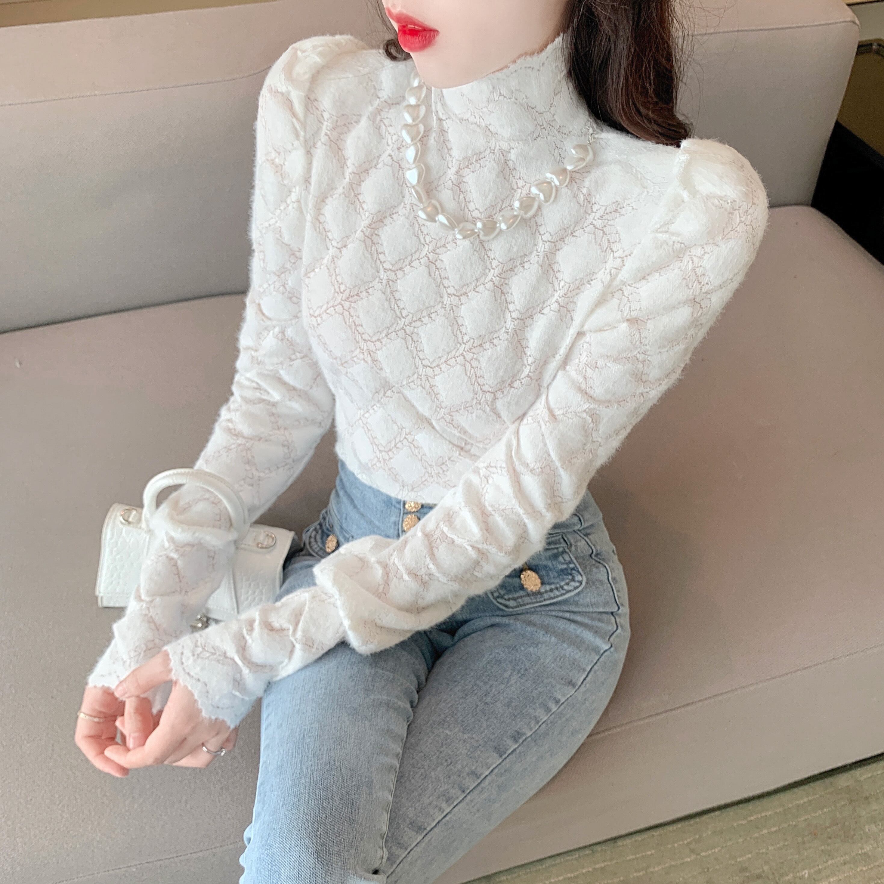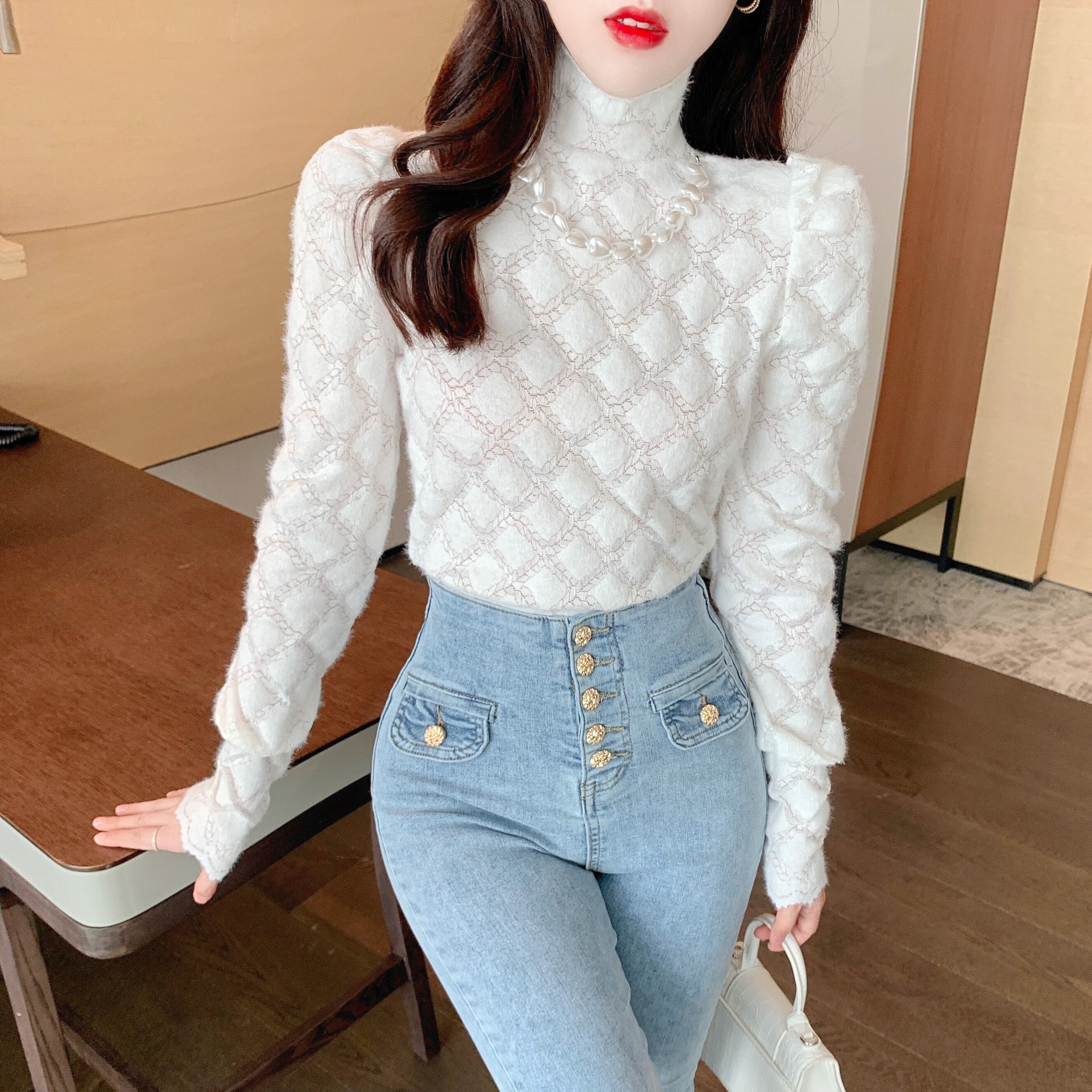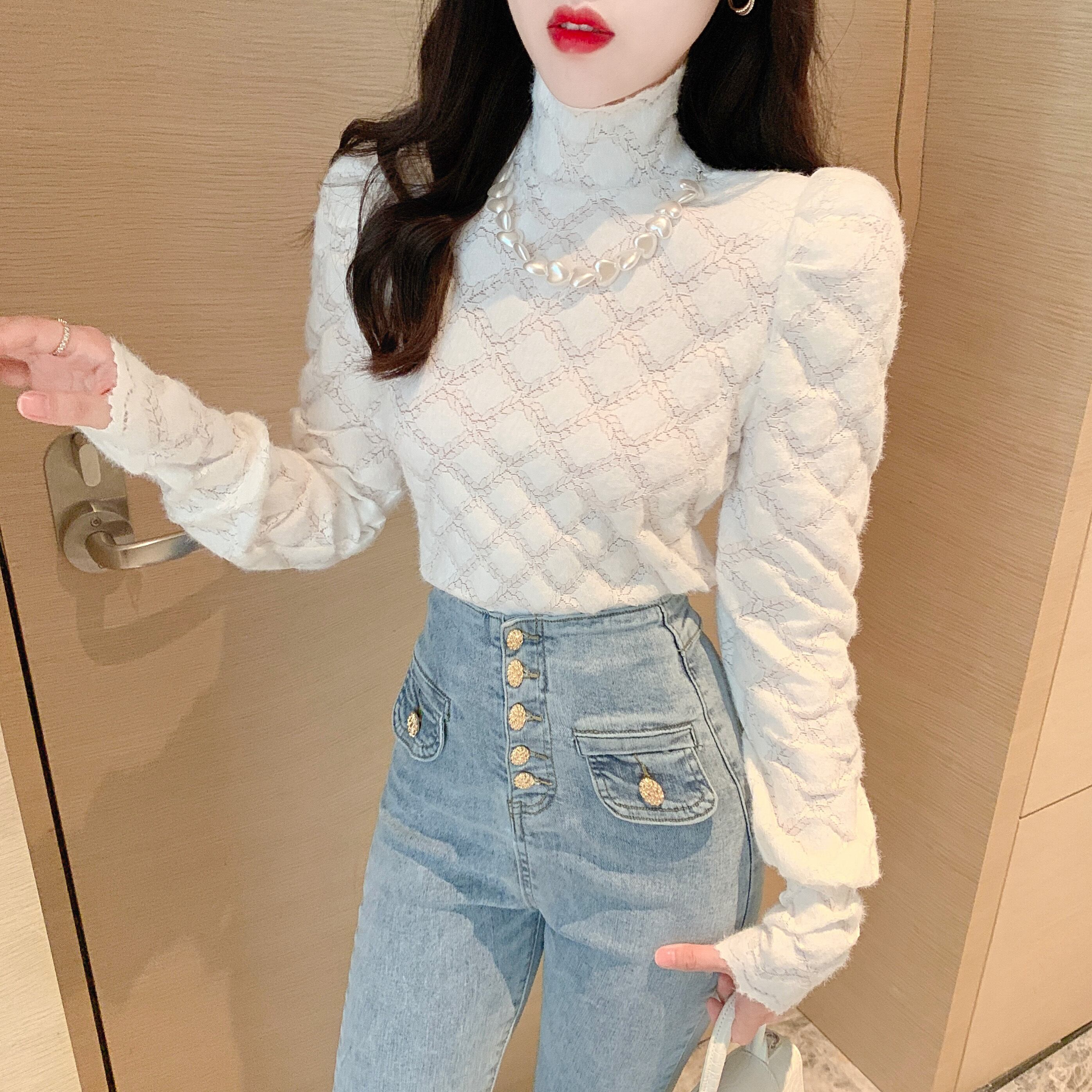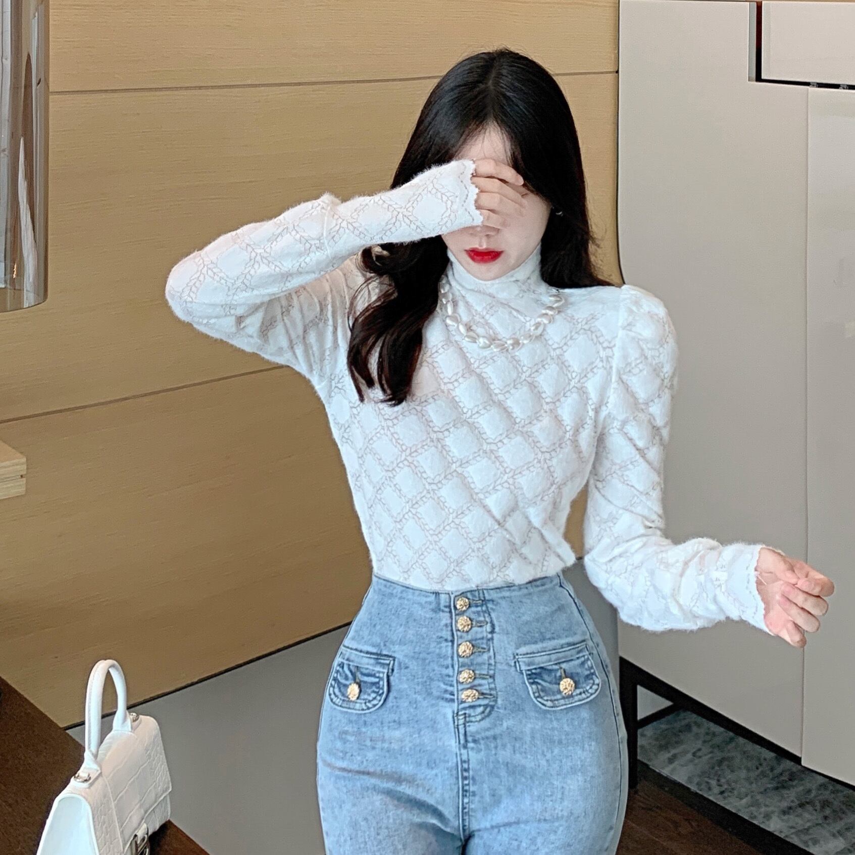 レースTシャツ オータムウィンタースリムソリッド カラートップス ロング 秋物 冬物 ソリッドカラー ガールズファッション52698143715