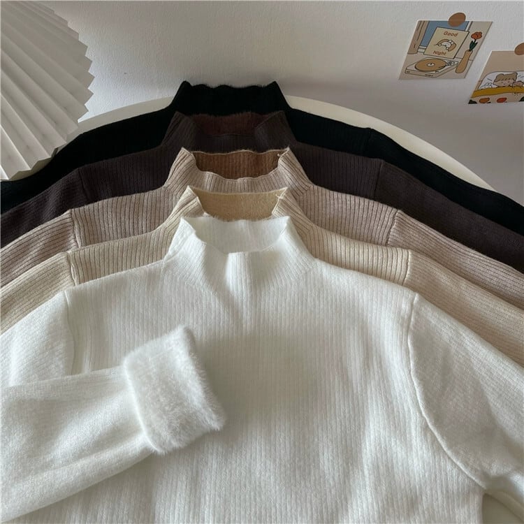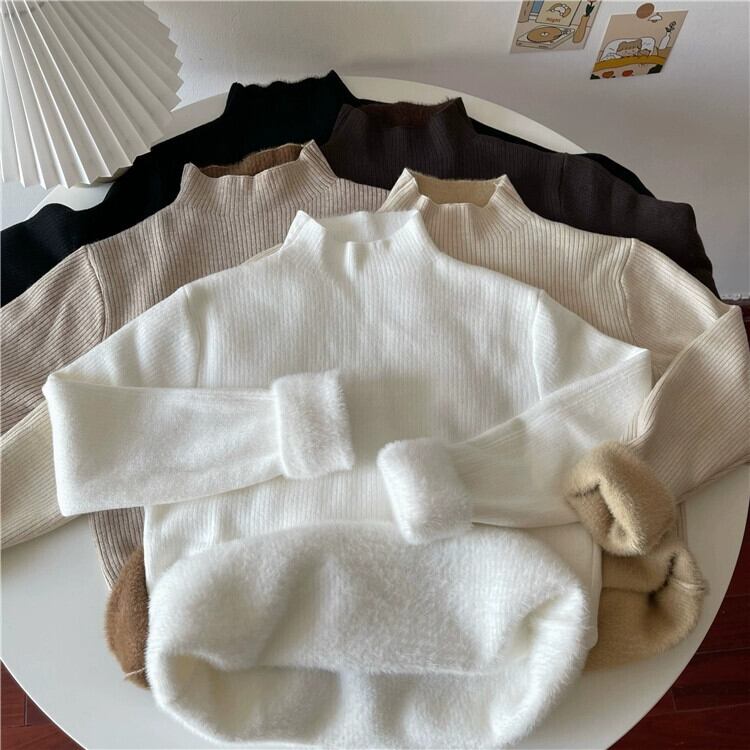 ホワイトハーフタートルネックプラスベルベット肥厚セーター女性春怠惰な長袖ボトシャツ多用途スリム暖かいセーター ロング スプリング 春物 ガールズファッション31442261018