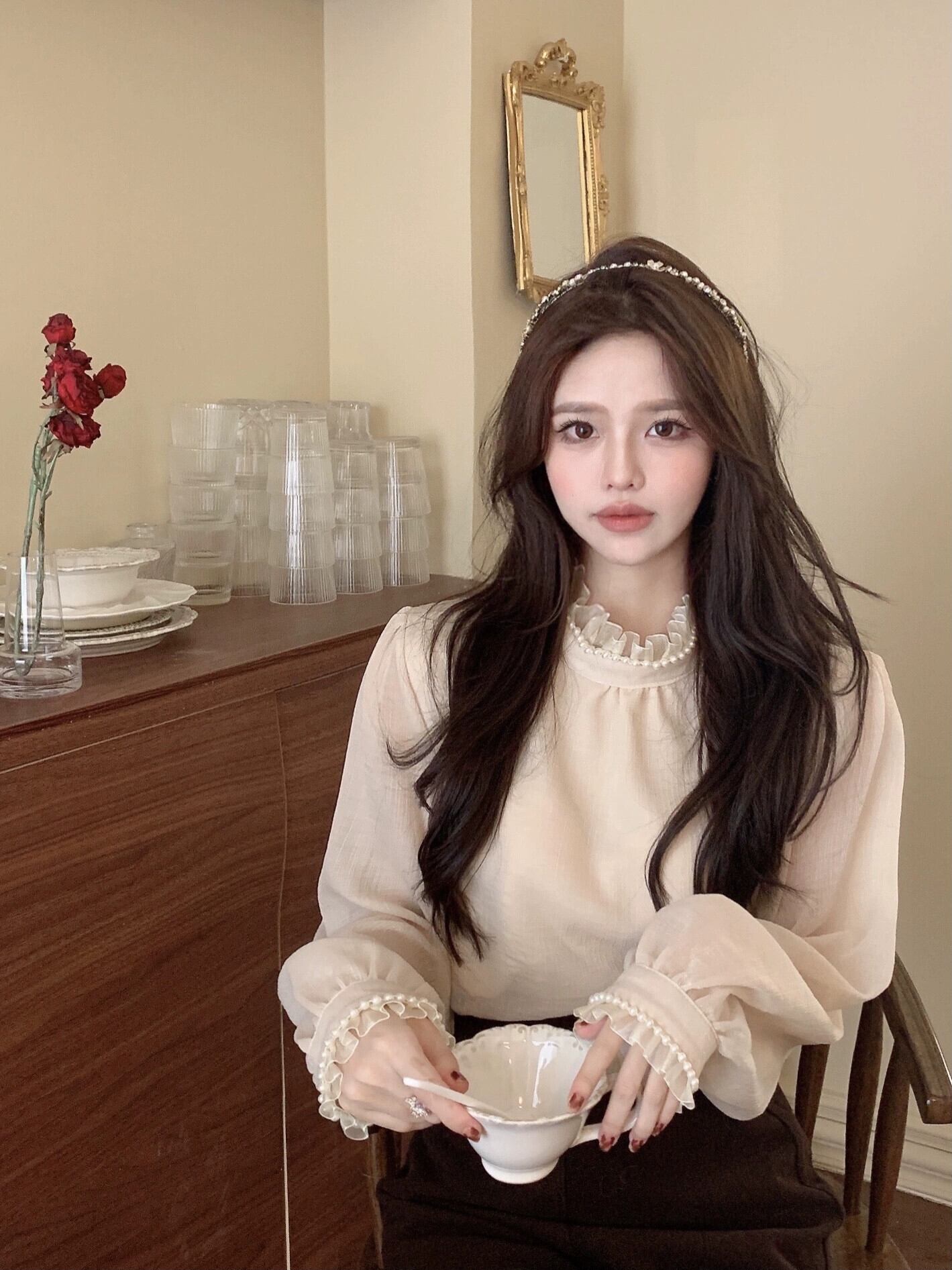 フレンチハーフハイカラーインナーシャツレディース、秋シックなニッチ長袖トップ、ルーズでエレガントなレースボトムシャツ ロング オータム 秋物 ガールズファッション93140797349