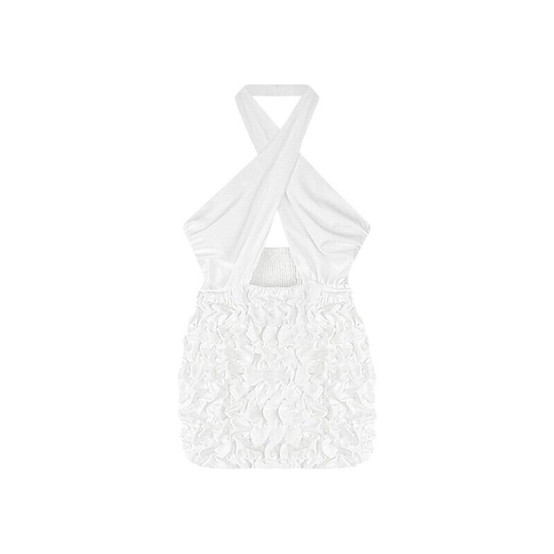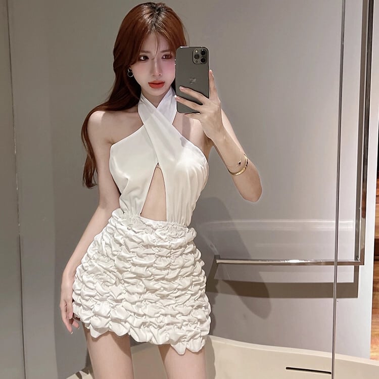セクシーな純粋な欲望クロスホルタードレス女性ハイウエストプリーツ白誕生日スカートヒップショートスカート ハイウェスト ホワイト ピュア ガールズファッション57820948264