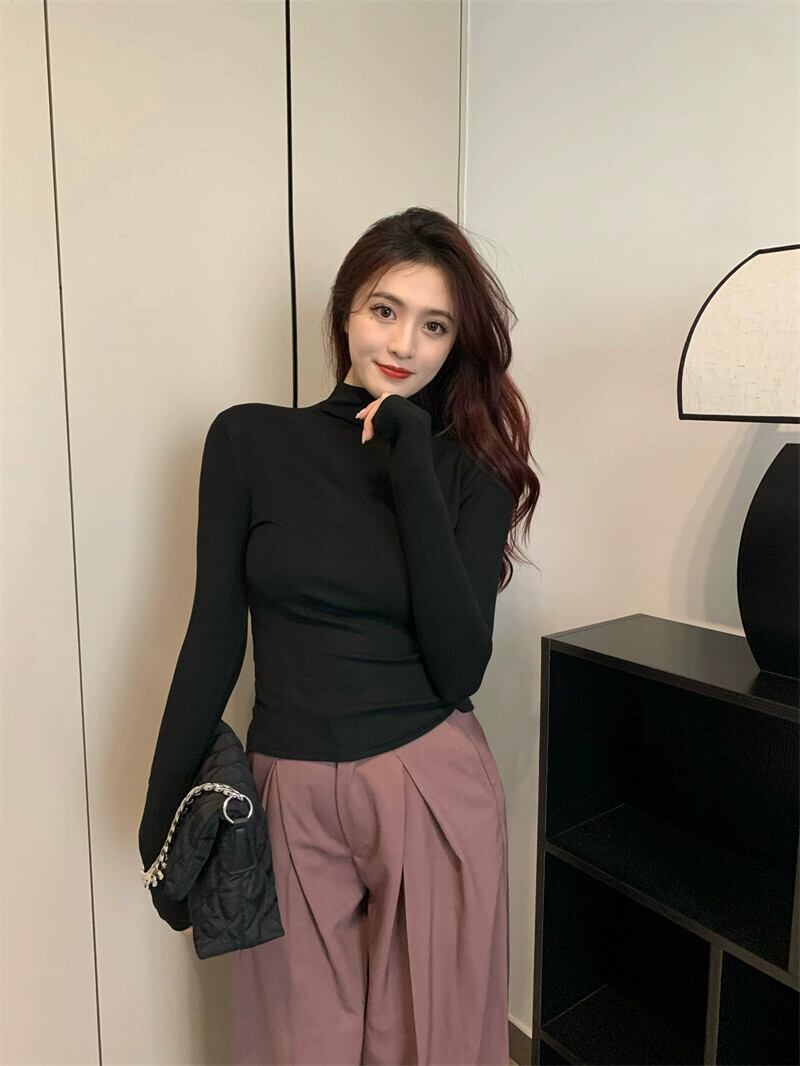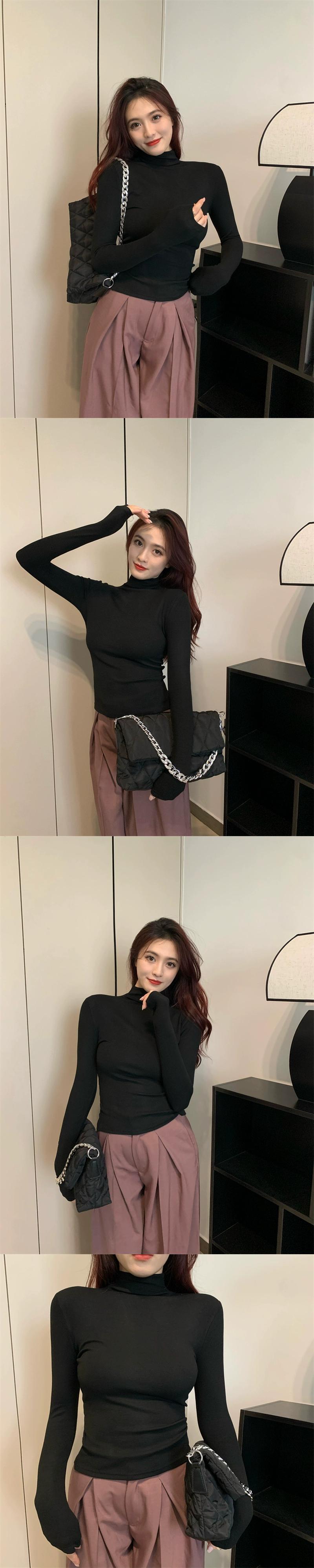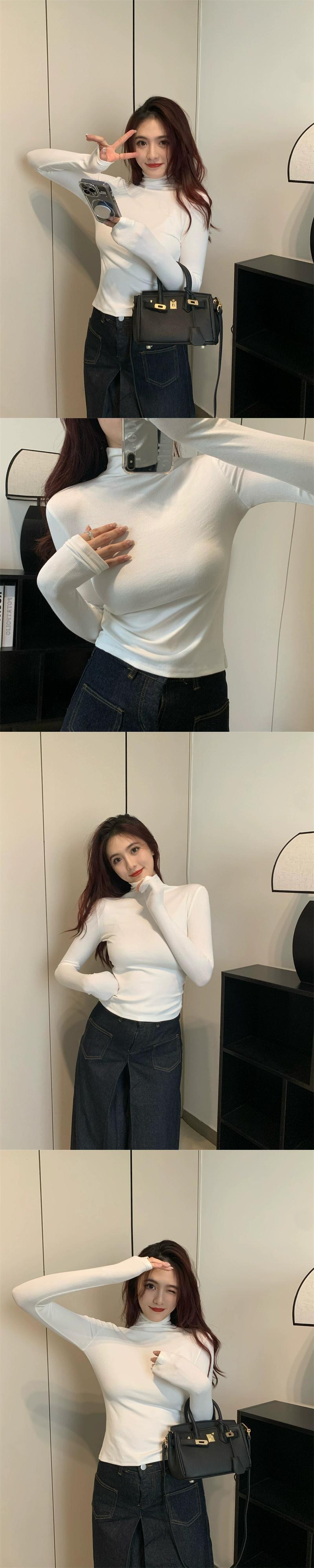 ハーフタートルネック長袖Tシャツレディースファッショナブルなスリムフィットショート起毛ボトムシャツ春多目的無地スレッドトップ ロング スプリング 春物 ソリッドカラー ガールズファッション72288861312