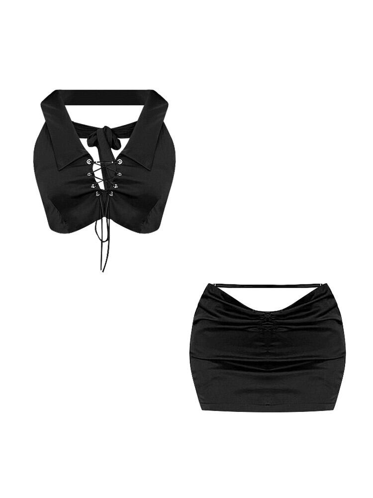 インターネットセレブファッションスーツ女性の夏の純粋な欲望ノースリーブホルターネックストラップ小さなベストハイウエストプリーツヒップショートスカート ハイウェスト サマー 夏物 ピュア ガールズファッション20008564174