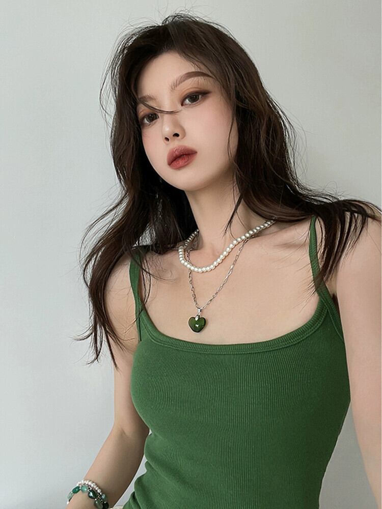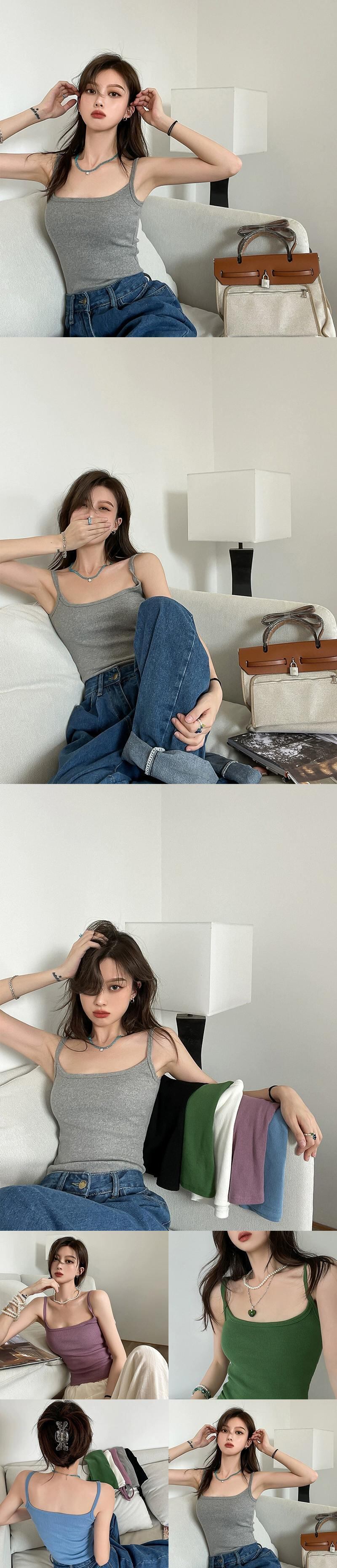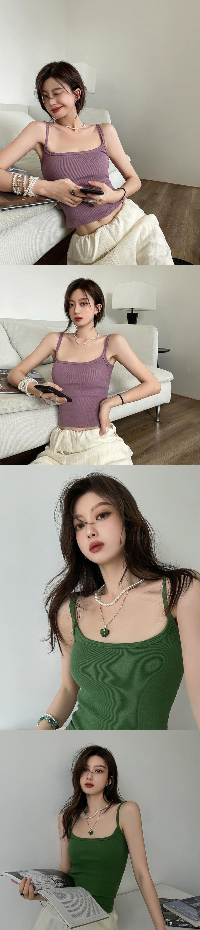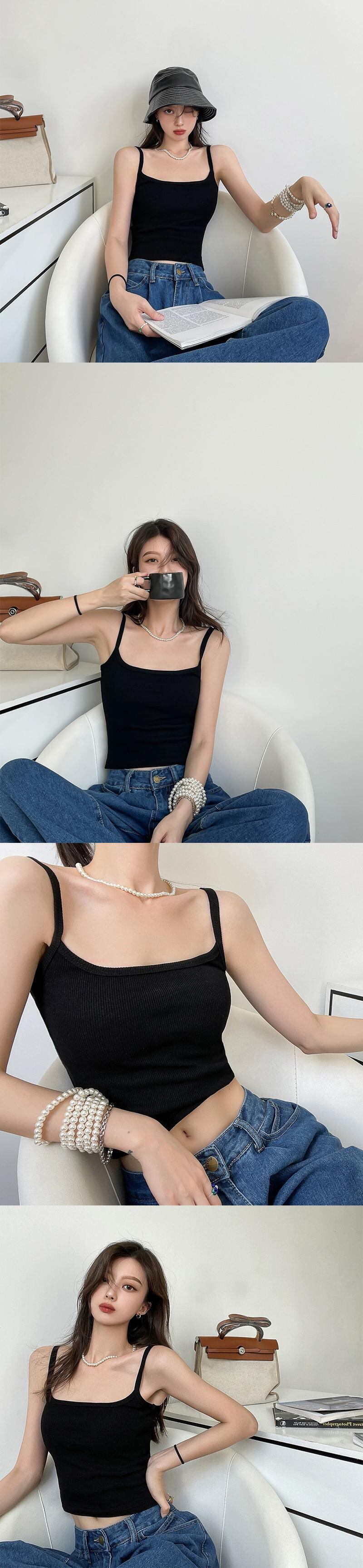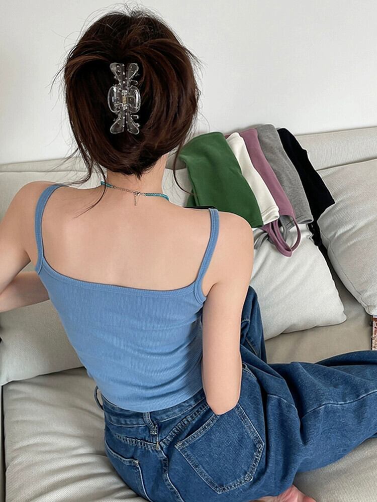 シンプルな無地キャミソールセクシーなインナーウェア美しいバックトップレディース春スリムストレッチショートアウターボトミングシャツ スプリング 春物 ソリッドカラー ガールズファッション83744107240