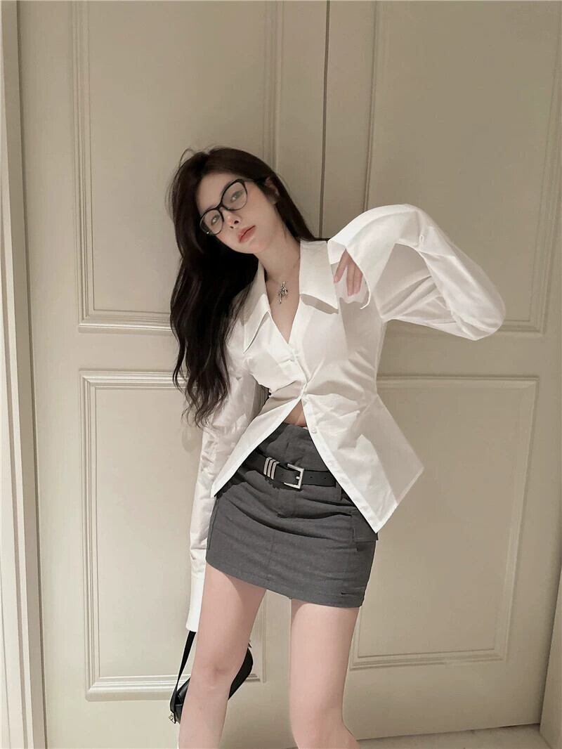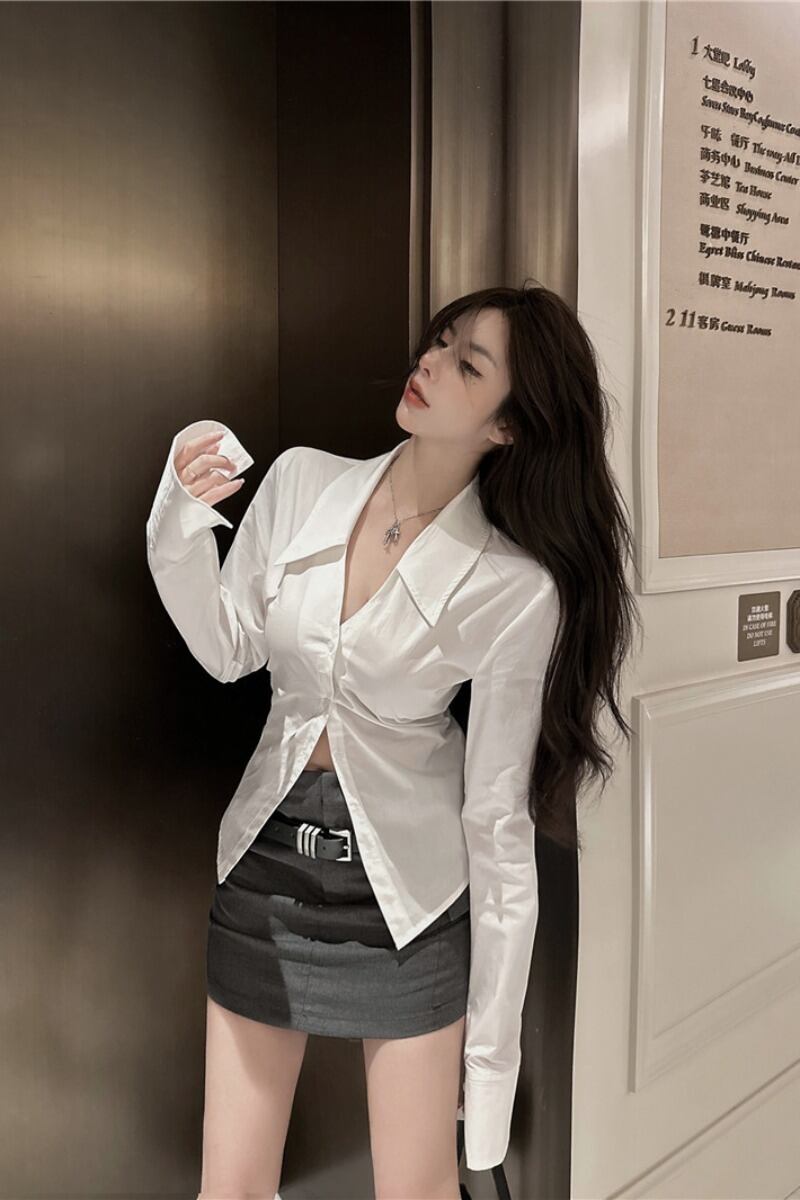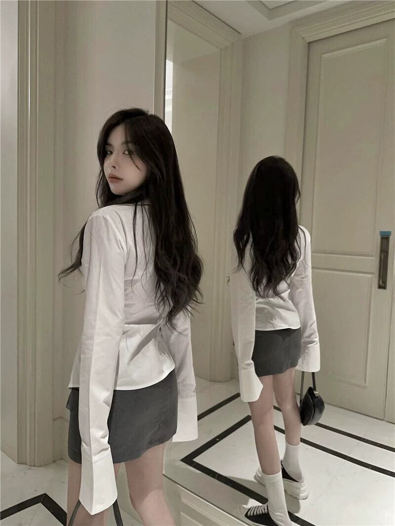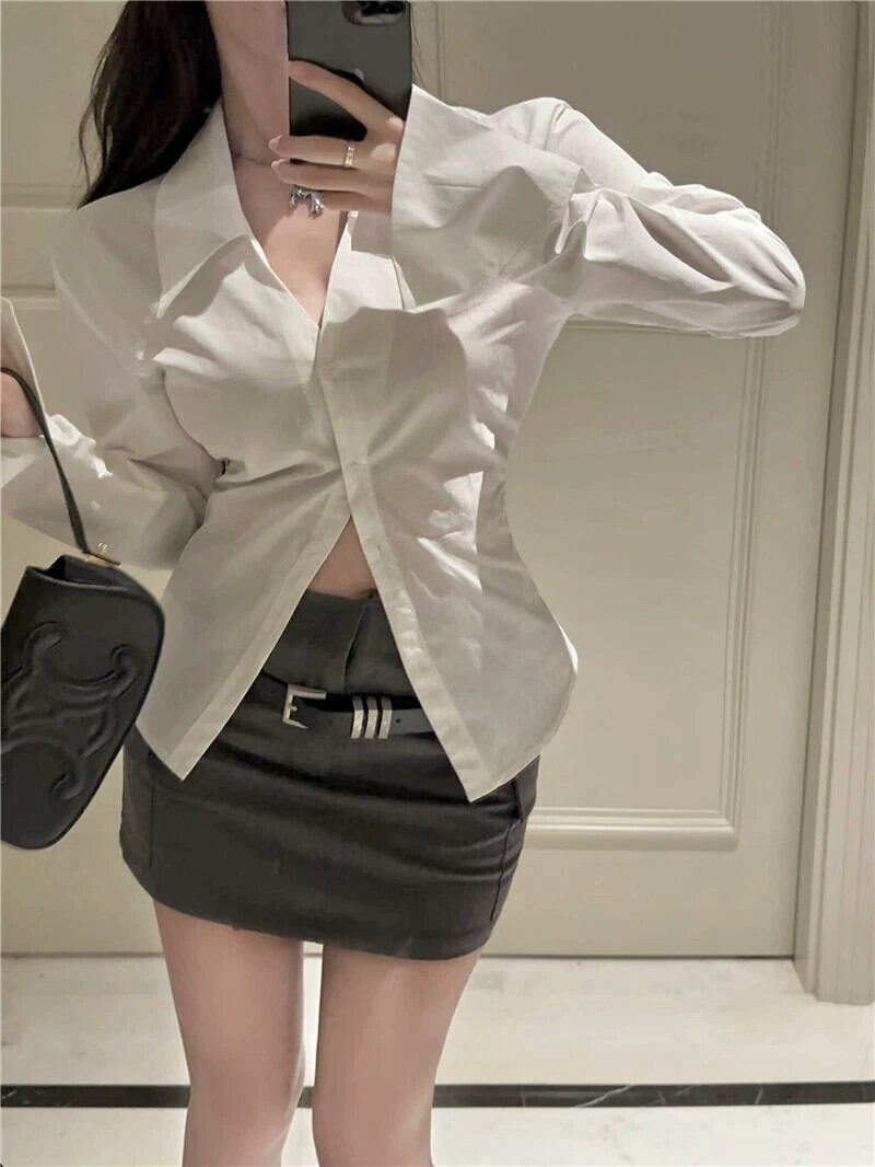 純粋な欲望白ラペルシャツスリム長袖シャツウエストヒップスカートホットガールワンステップショートスカートスーツ女性秋 ロング ホワイト オータム 秋物 ガールズファッション20117991303
