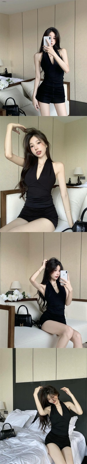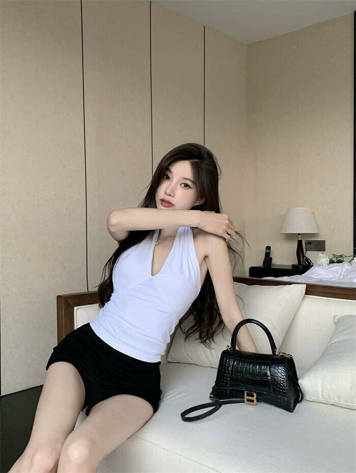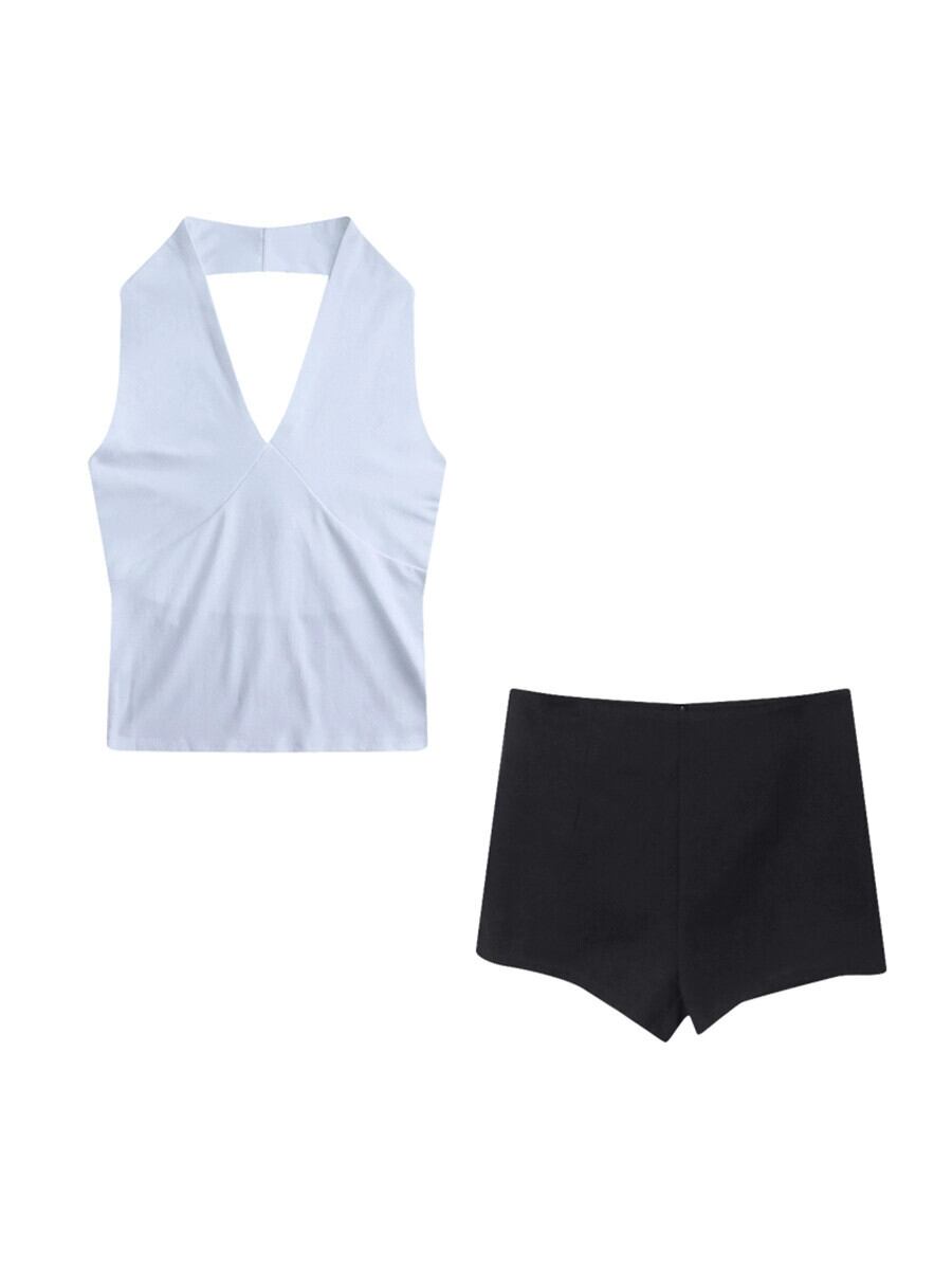 色:ホワイトホルター,ブラックホルター,黒いズボン