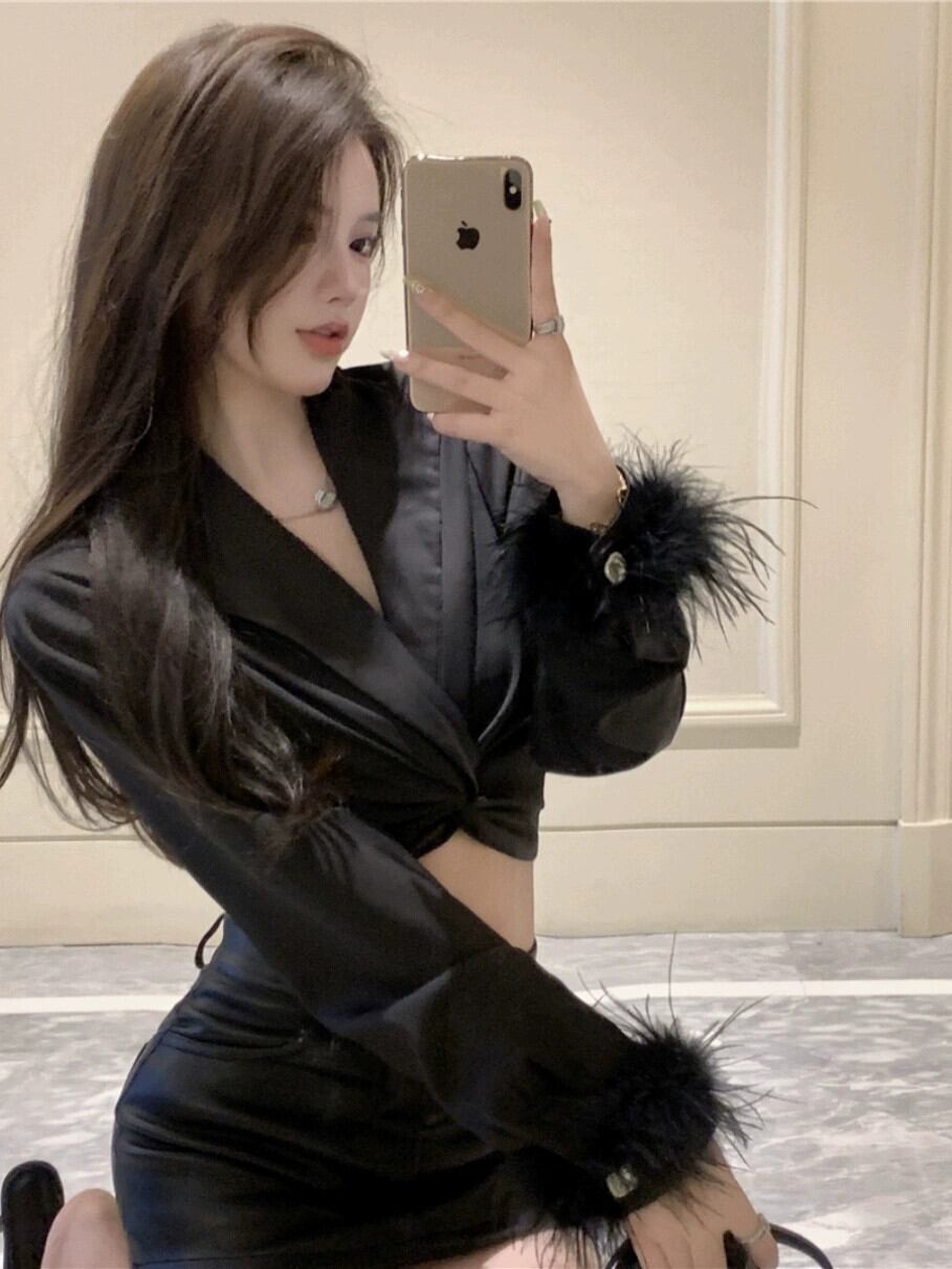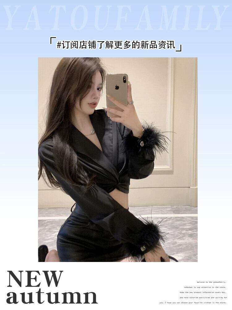 慎重にストラップ付きのショートシャツの女性の秋の純粋な貪欲なスーツの襟豪華なスプライシング長袖シャツスリムフィットトップ ロング オータム 秋物 ピュア ガールズファッション81540422704